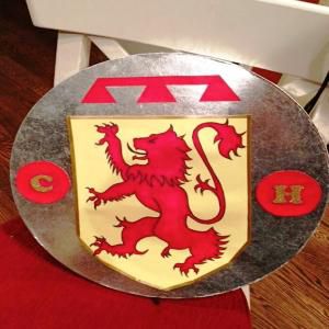Про шолом не пишу — його робив тато, і, скажімо так, він вийшов замалий. На фото є, а далі не використовувався.Тобто ми одразу його зняли і він на святі в ньому не ходив.